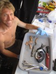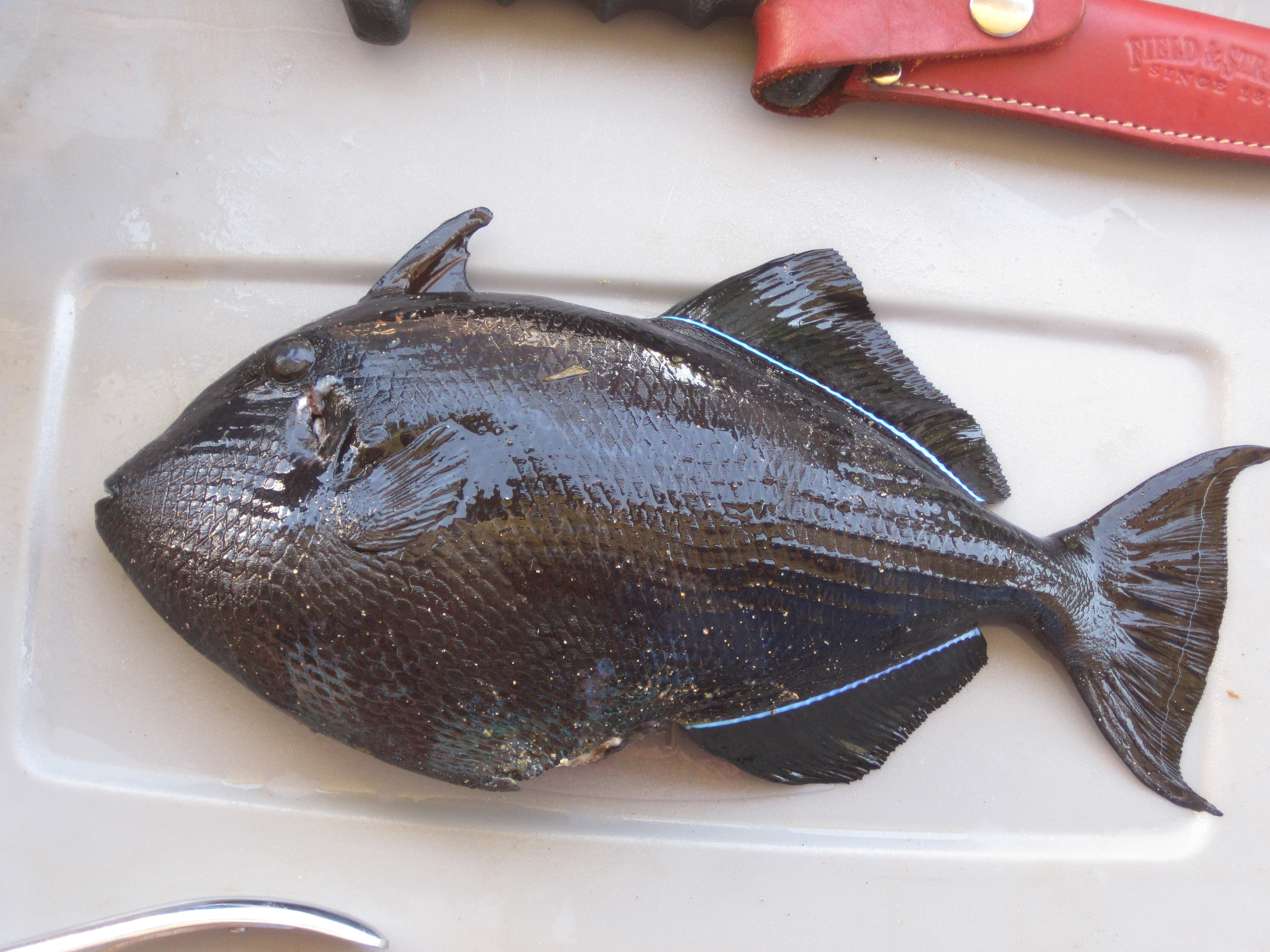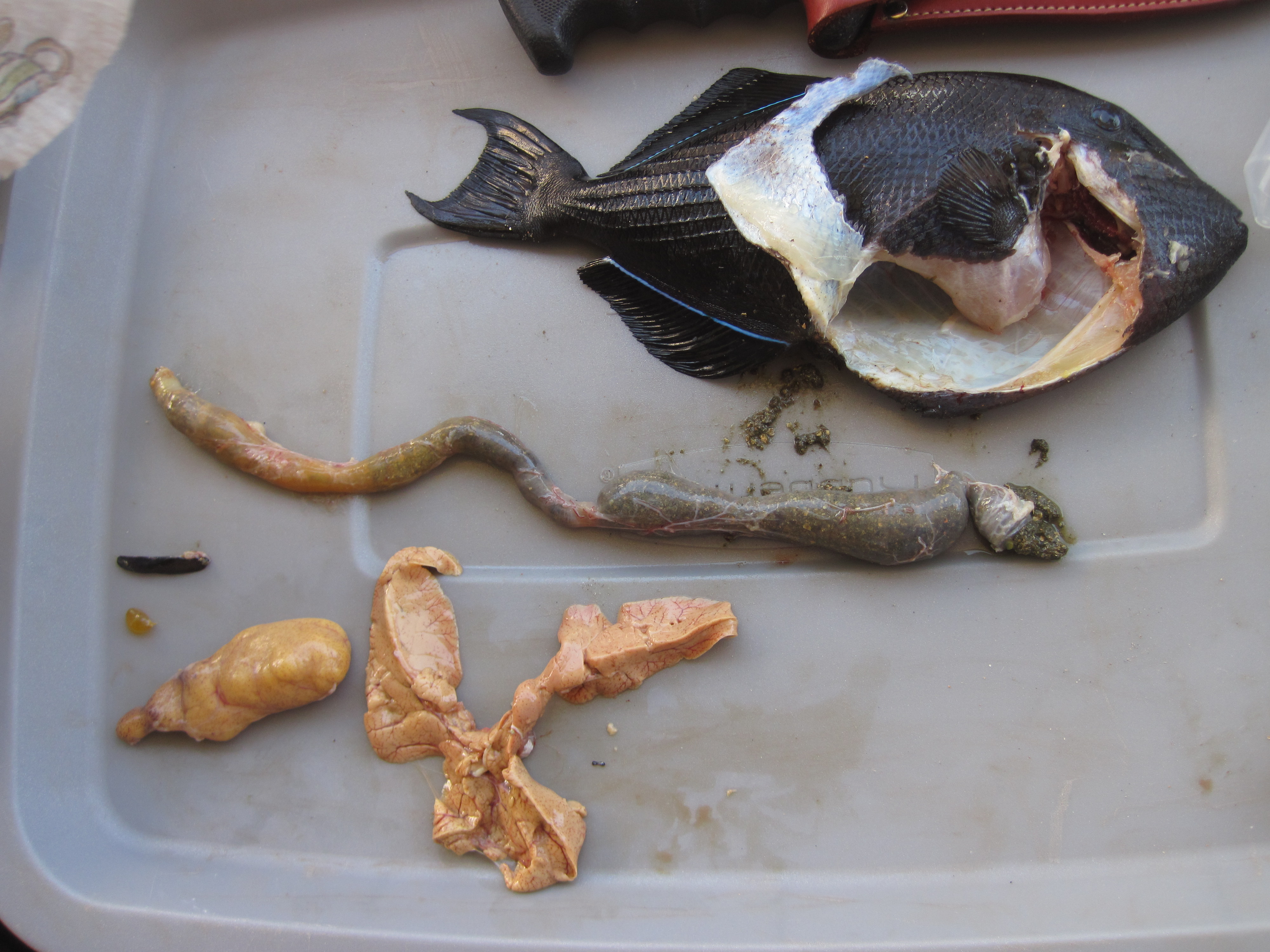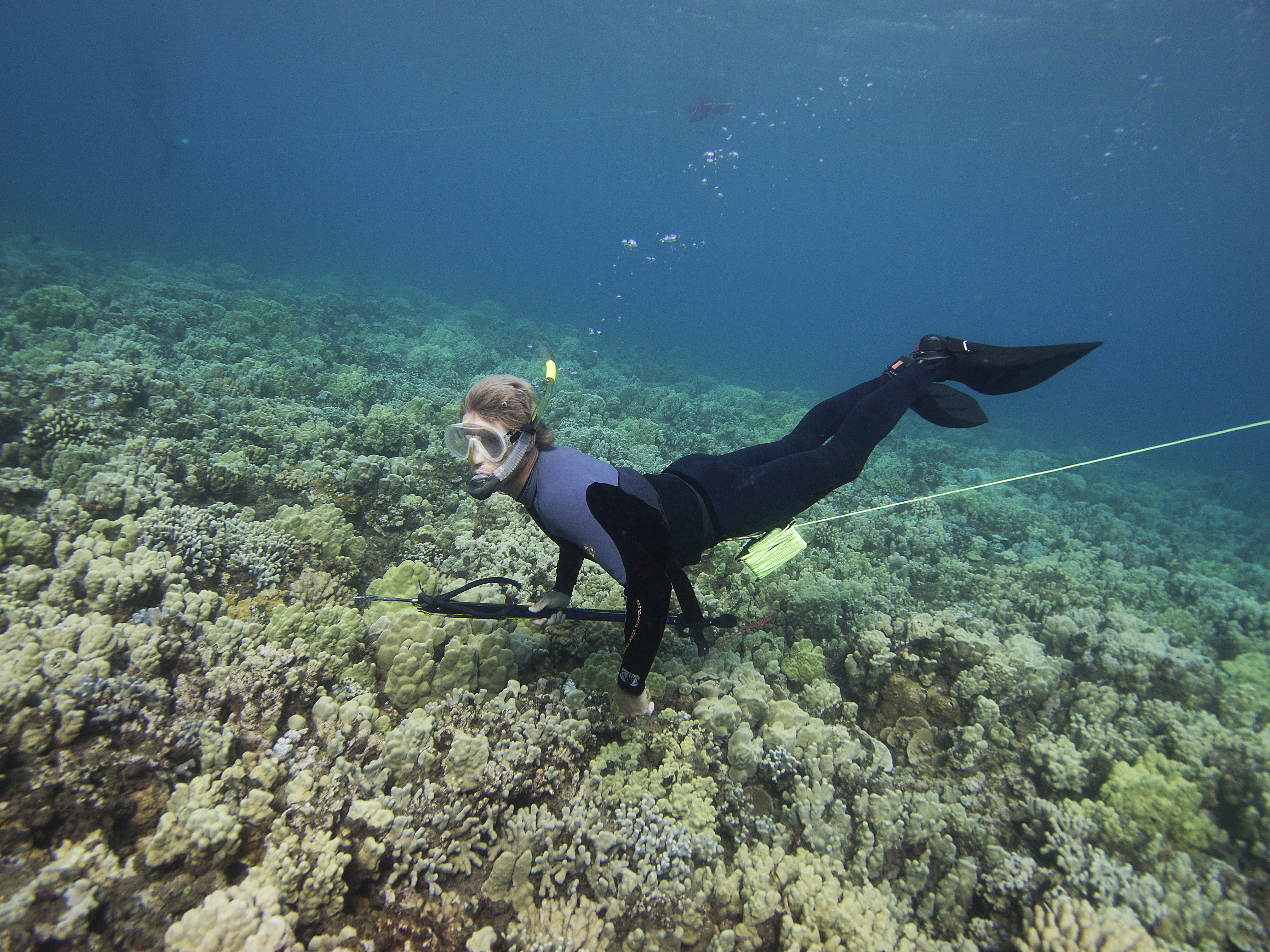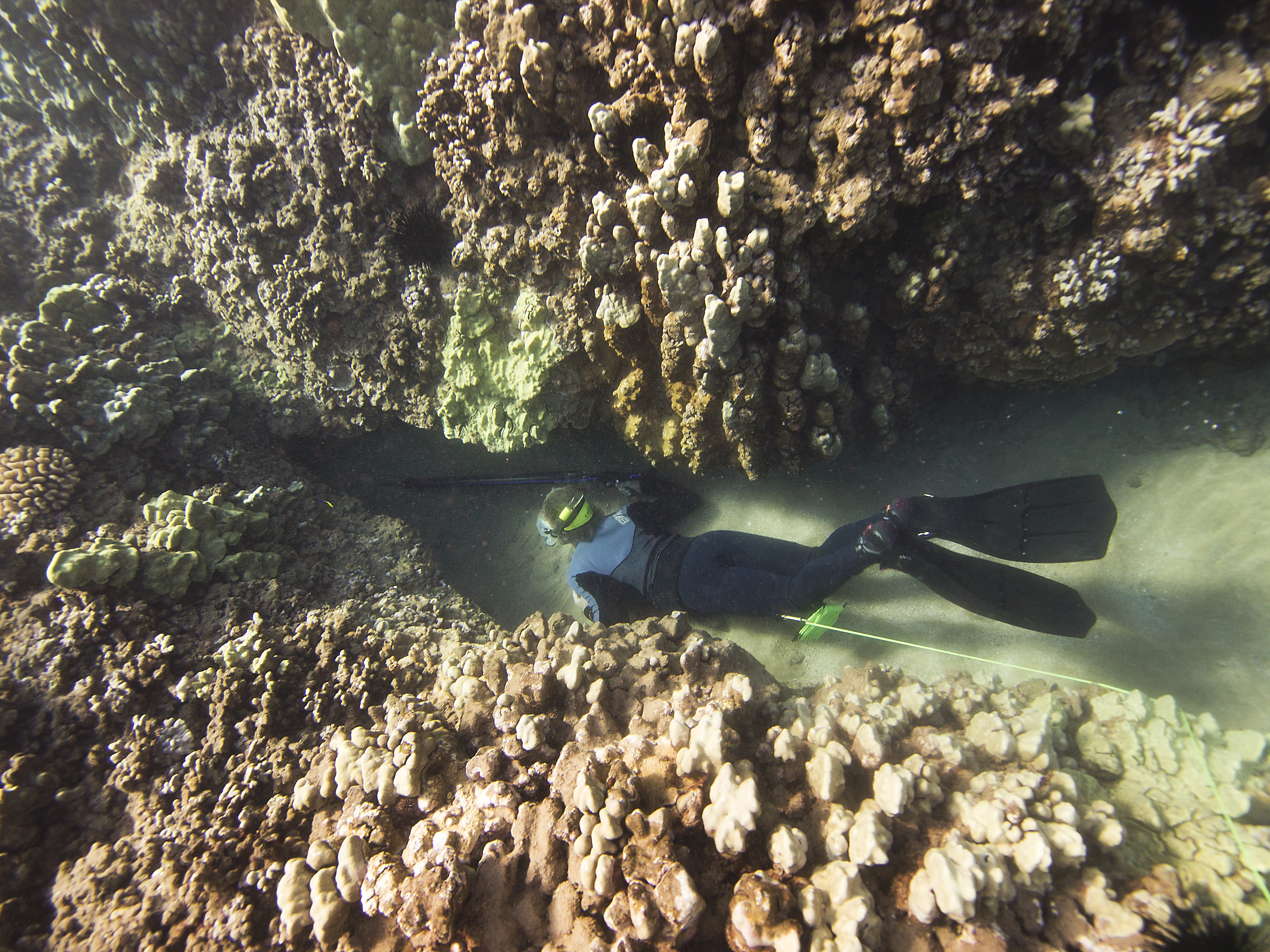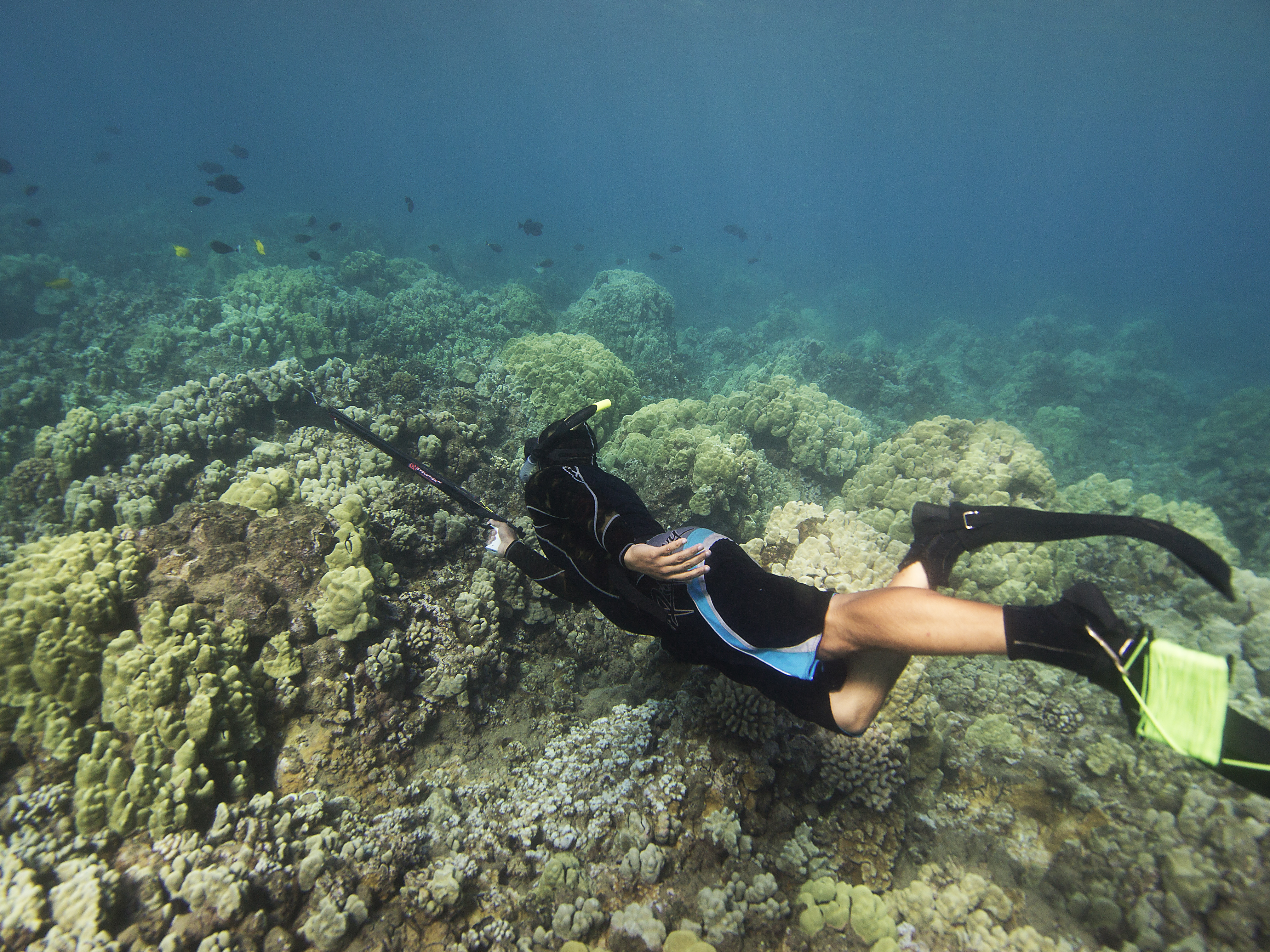 However, I recently had the opportunity to do a little spear fishing in Maui with my buddy Clint. He had ordered some spears to do some preliminary work for a project on the feeding behaviors of black durgeon triggerfish (Melichthys niger or humu humu ele ele). After our fist dive, I realized that I’ve found a new love & passion. The spear-fishing experience is far more intimate than hook & line: to see the fish, dance with the fish, & spear the fish; all while holding your breath & avoiding the circling sharks & seals. It’s quite the organic experience. Clearly this has put a new angle on my angling career; though it has become quite clear that fishing is to spear fishing, as trapping is to hunting. With a spear in hand, you are no longer a fisherman–you are a hunter (& possibly the hunted).